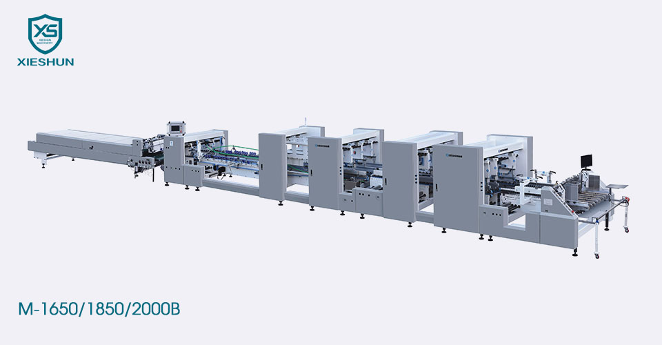 China Xieshun M-1650/1850 / 2000b Tugas Berat Otomatis Bottom Bottom Gluer, gunakake komponen elektronik ngisor, gunakake komponen elektronik, gunakake plancongan medender, kanthi nggunakake pandu linear kanggo njamin latihan.